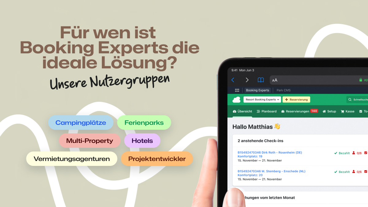 🔍 Neugierig geworden? Erfahre in einer persönlichen Demo, wie Booking Experts dein Unternehmen unterstützt – egal ob Campingplatz, Ferienpark, Hotel oder Agentur.