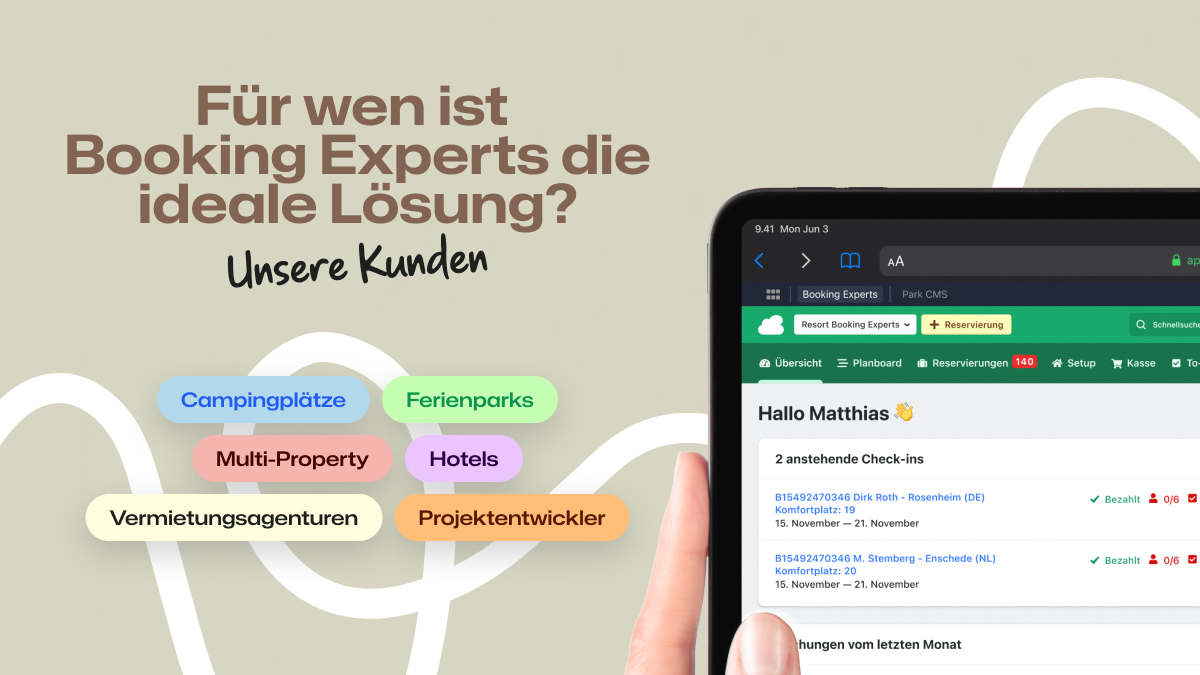🔍 Neugierig geworden? Erfahre in einer persönlichen Demo, wie Booking Experts dein Unternehmen unterstützt – egal ob Campingplatz, Ferienpark, Hotel oder Agentur.