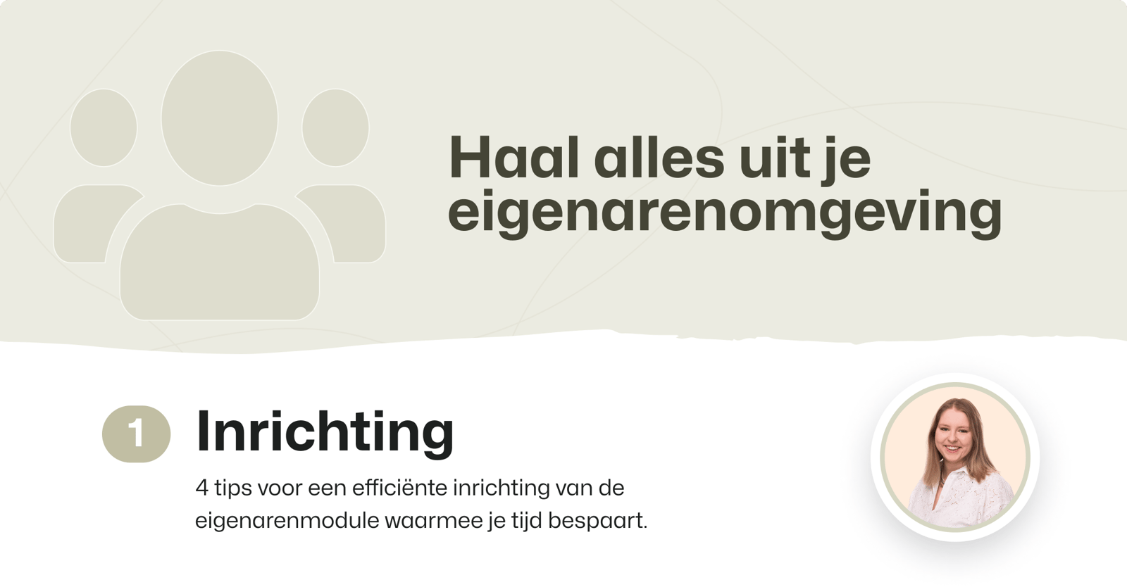 Het efficiënt beheren van huiseigenaren is voor veel recreatieondernemers een uitdaging. Door de eigenarenomgeving slim en overzichtelijk in te richten, kun je echter veel tijd en moeite besparen. Customer Success Specialist Iris staat voor je klaar en deelt 4 praktische tips om het beheer eenvoudig en effectief te maken.